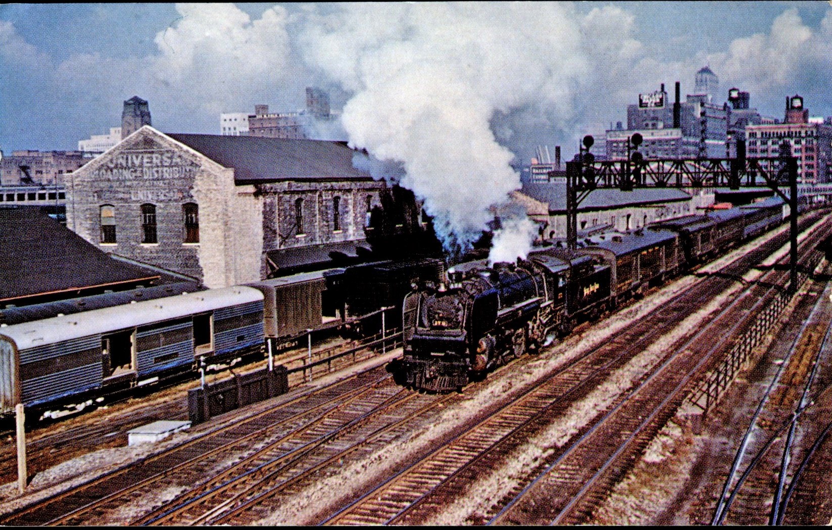 The locomotive in the picture on the front of this post card is Nickel Plate Number 172. It is pulling train Number 8 from Chicago to New York. It is departing Chicago here on October 14, 1955.
